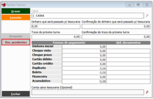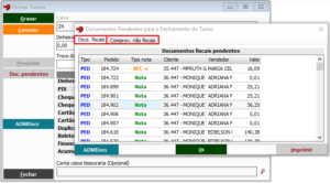 Fechamento de turno- Documentos pendentes